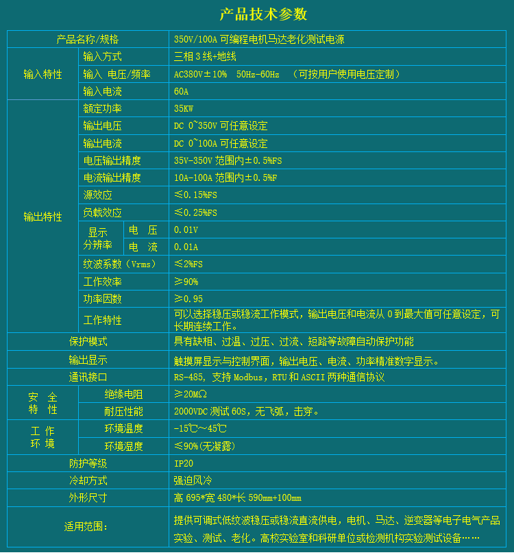 提供可调式低纹波稳压或稳流直流供电,电机、马达、逆变器等电子电气产品实验、测试、老化。高校实验室和科研单位或检测机构实验测试设备……