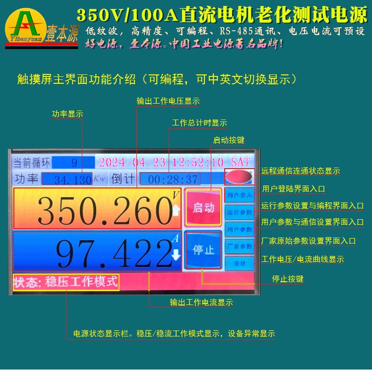 350v/100a大功率高压程控直流电源400V稳压可调电机老化测试电源