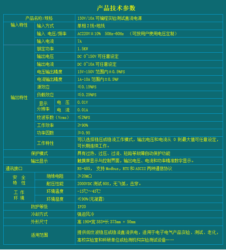 提供可调式低纹波稳压或稳流直流供电,适用于新能源整流转化,储能充电,户外太阳能路灯充储电等。