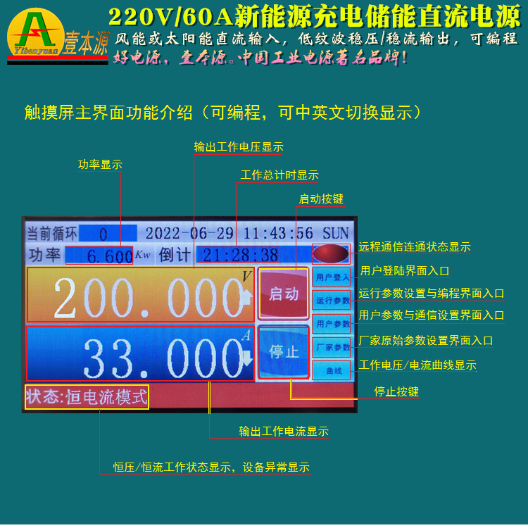 厂家订制220V/60A可编程直流稳压电源250V新能源充电储能直流电源