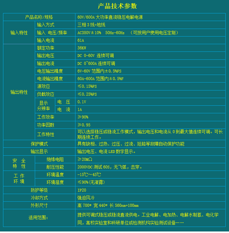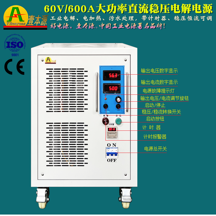 壹本源牌60V/600AIGBT控制恒压恒流电加热直流电源65V70V电解电源